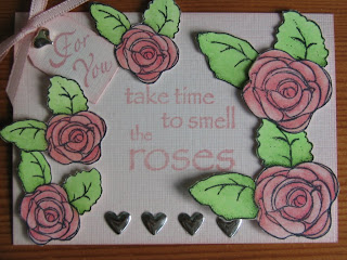 This week we would love to see you create an ATC featuring summer flowers such as roses, lilies, lilacs, summer daisies etc. The facts and figures for making an ATC are on the side bar and as long as you have used at least one Magnolia stamped image you can join in the fun with us. Here are the Design Team's creations for your inspiration, and this week we have some blooms to give away as a prize.